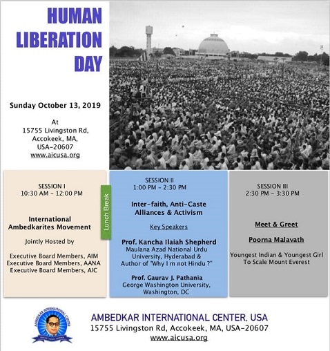 [74] AIC Human Liberation Day - Celebrating Women Liberation: 16th October 2021 Ambedkar International Center(AIC), a Washington DC,USA based organization , Celebrated Human Liberation Day on Saturday, 16th October....: By AIC - Dr Ambedkar International Center. Facebook. (n.d.-e), https://www.facebook.com/ambedkarinternationalcenter/videos/1241752439620972/.