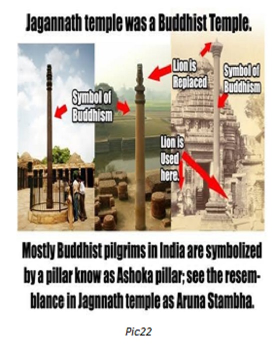 | 19 | STUDIES IN THE BUDDHISTIC CULTURE OF INDIA | 1987 | LM JOSHI | MOTILAL BANARSIDASS | Jagannatha temple at Puri in Orissa was also originally a Buddhist shrine. Similarly, the Vishnupada temple at Gaya was also once a Buddhist shrine. | Brahmanist Assault on Buddhists |