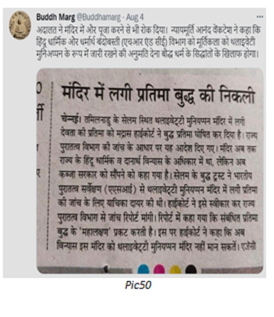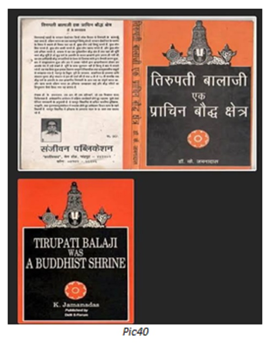 | 25 | TIRUPATI BALAJI WAS A BUDDHIST SHRINE | 1991 | DR. K. JAMANADAS | SANJIVAN PUBLICATIONS | In this book it has mentioned that the temple was originally a Buddha Chaitya andduring the course of revival of Hindu worship, it was converted into a Hindu temple | Tirupati Balaji was a Buddhist Shrine |