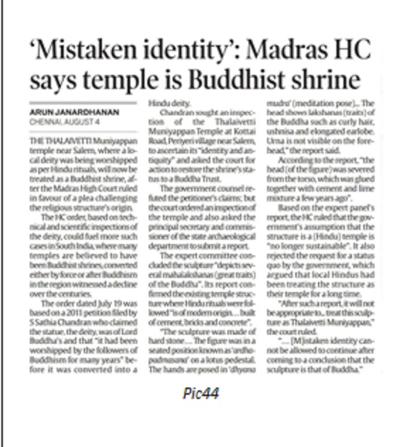 | 41 | BUDDHISM IN INDIA | 2003 | GAIL OMVEDT | SAGE INDIA | This book explains that about a religion claiming the kind of ‘tolerance’ which Hinduism does did not allow scope for Buddhism. There seem to have been inherent contradictions between Buddhist and Brahminic teachings, such that one had to drive out the other. | Will Buddhists seek to reclaim monuments destroyed to build Hindu temples? |