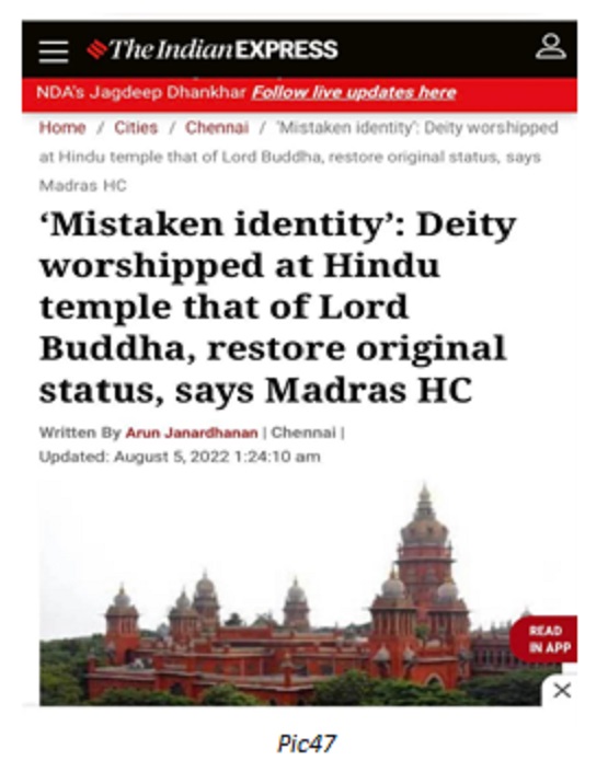 | 68 | ON THE ORIGIN OF HINDU FESTIVALS IN ESSAYS & LETTERS | 2015 | BANKIM CHANDRA CHATTOPADHYAY | CREATESPACE INDEPENDENT PUB | This book is a fact greatly in support of the theory, that the images of Jagannath, Balaram, and Subhadra, which now figure in the Rath, are near copies of the representations of Buddha, Dharmma, and Sangha, and appear to have been modelled upon them. | காஞ்சியில் அழிக்கப்பட்ட (மறைக்கப்பட்ட) பௌத்த அடையாளங்கள் |