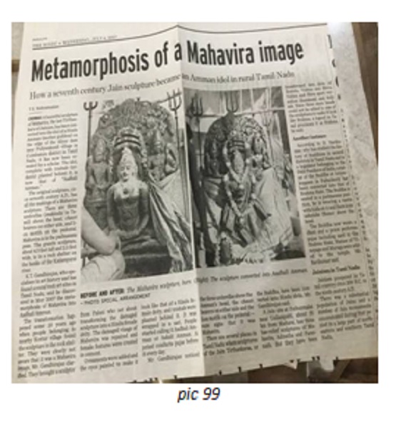 | 5 | STUDIES IN SOUTH INDIAN JAINISM | 1922 | B. SESHAGIRI RAO, M. S. AYYANGER RAMASWAMI | WENTWORTH PRESS | In this book it has mentioned that the Jains used to instal the images of their saints in their religious places, a practice which was followed by Brahmins. Hindu temples appeared all over Tamilnadu probably after converting the Jain religious places. The idols of 63 Brahmin Sanyasis, who led destruction of Jainism, still adorn the walls of some Hindu temples in Tamilnadu. | Hinduism and TalibanismBy Mukundan C. Menon |